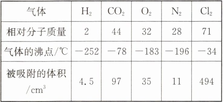 18. 下表列出了不同温度下每立方厘米活性炭所能吸附的常见气体的体积。分析表中数据与气体组成、性质等的关系,你认为下列结论正确的是( )