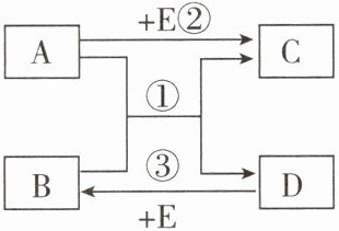 13. 已知A、B、C、D、E五种物质均为初中化学中常见的物质,它们相互转化的关系如图所示。A、B均为黑色固体,C是导到温室效应加剧的主要气体,D是一种红色的金属单质。请回答下列问题:
