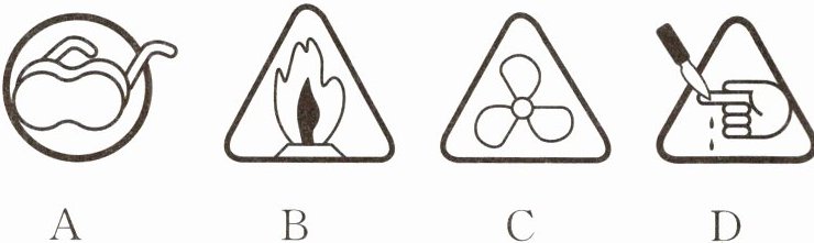 1. 规范实验操作,注意实验安全。下列图标表示实验中会用到明火的是( )