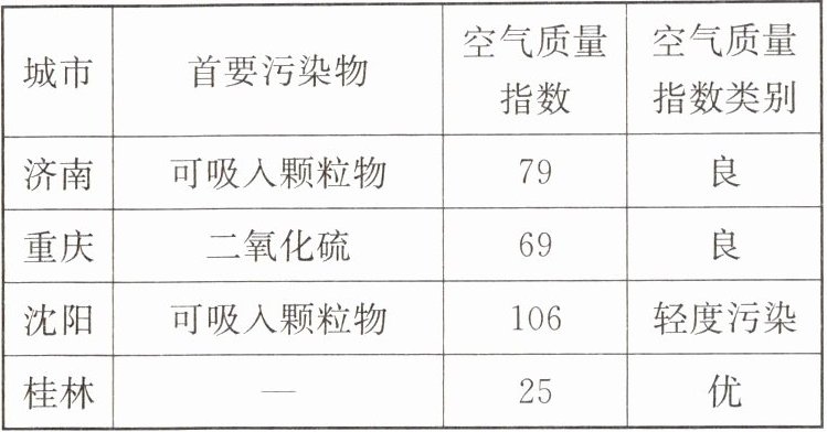 12. 下表是我国部分地区某日的空气质量指数日报。根据表中内容填空: