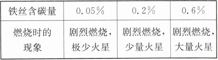 下表是不同含碳量的铁丝(所用铁丝直径均相同)放入氧气中燃烧时的实验现象: