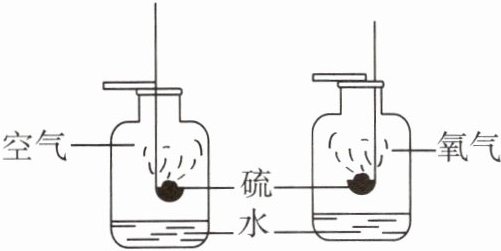 如图所示,将硫分别在空气和氧气中燃烧。