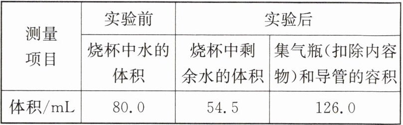 |集气瓶(扣除内容物)和导管的容积/mL|126.0|