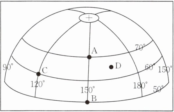(4)图中AB为______线,指示的方向是______方向。图中各点所在纬线最长的是______点。