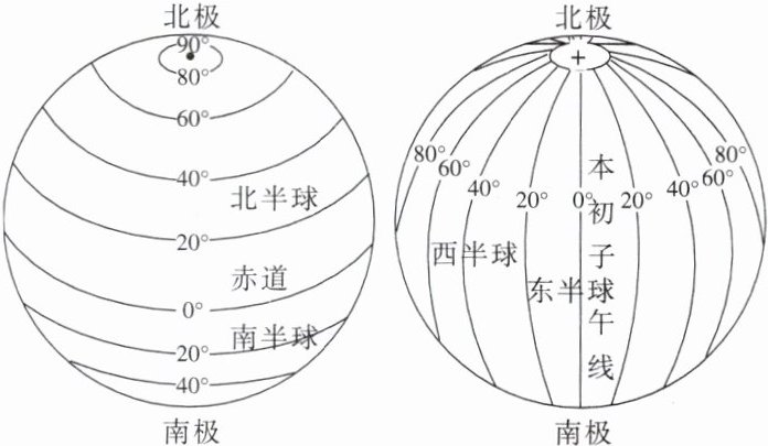 读经纬线与经纬度的划分示意图,完成1~2题。