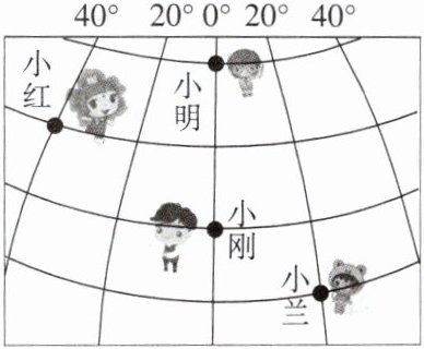 7. 能与小红所在经线组成经线圈的经线是( )