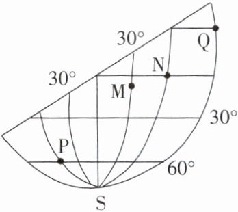 龙卷风是一种灾害性天气。小强根据天气预报将龙卷风始发地M及运动方向在经纬网地图上做了标注。据此完成1~2题。