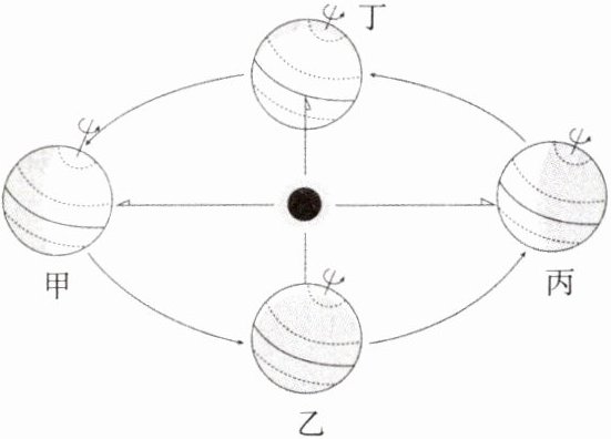D. 地球公转到甲位置时,北极圈以北出现极夜现象