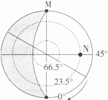 下图为地球某时刻太阳光照示意图,图中阴影部分表示黑夜,圆圈表示纬线,直线表示经线,箭头表示地球自转方向。读图,完成7~8题。