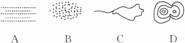 5. 王明想去探望在新疆做生意的父母,在查看地图时对表示沙漠的图例记不清了,请你帮他找出来( )