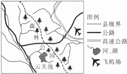 4. 读某区域平面略图,云天池位于飞机场的( )