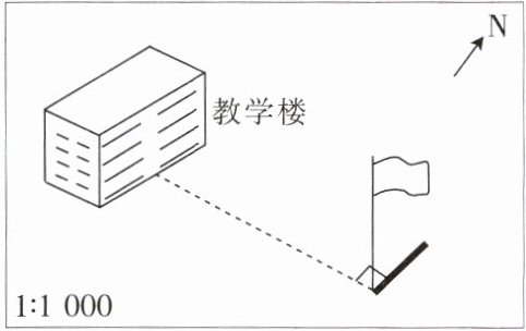 7. 旗杆位于教学楼的____方向( )