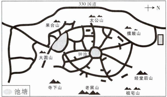 2. 读某村平面示意图,图中缺少地图三要素中的( )