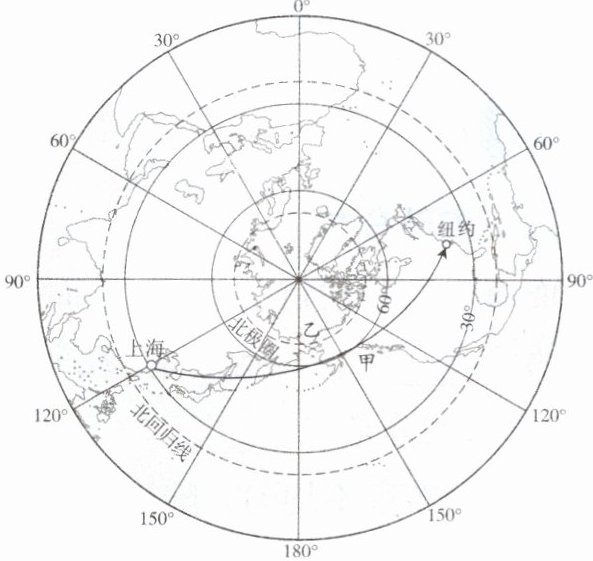 张先生往返于上海和纽约之间办公,下图为其所乘坐航班的飞行线路示意图。读图,完成 4~5 题。