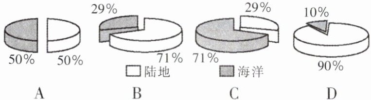1. 下面四幅图能正确表示地球海陆面积比例的是( )