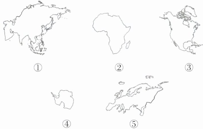 世界上的大洲中,有的“肩并肩”完全连在一起;有的“手拉手”有运河相连;有的“冬季海峡铺冰桥”,成为相互连接的捷径……读五个大洲的轮廓图,完成 2~3 题。