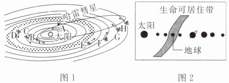 8. 读太阳系示意图(图 1)和太阳系“生命可居住带”示意图(图 2),完成下列问题。
