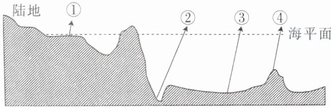 9. 人们把海洋誉为“蓝色国土”,在平静的海面下,海底地形高低起伏,错落有致。读海底地形示意图,完成下列问题。