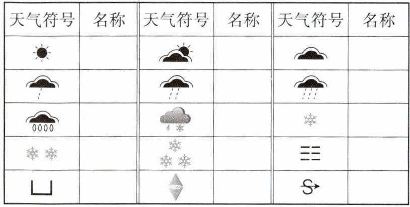 |天气符号|名称|天气符号|名称|天气符号|名称|