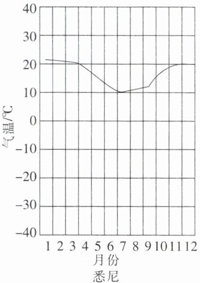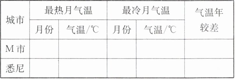 2. 比较M市与悉尼的气温曲线图,完成下表。