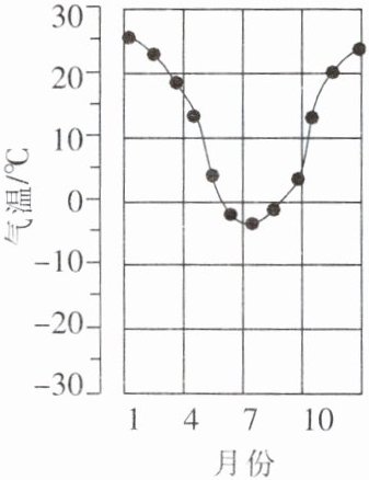 5. 读某地气温年变化曲线图,下列说法正确的是( )