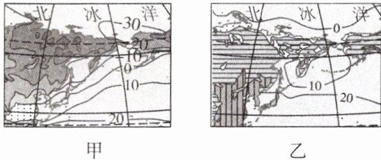 9. 造成甲乙两图所示区域气温差异的主要原因是( )