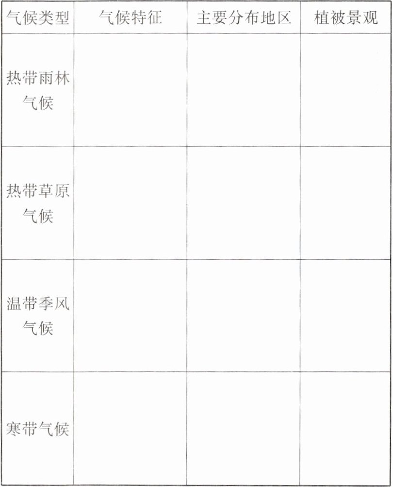 |气候类型|气候特征|主要分布地区|植被景观|