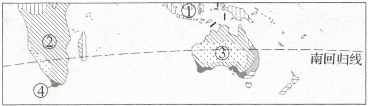 C. ③气候类型分布在中纬度地区的大陆东岸