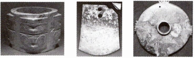 出土的玉琮(象征神的徽章) 土的玉钺(象征着王的权力与威严) 礼器,财富的象征)