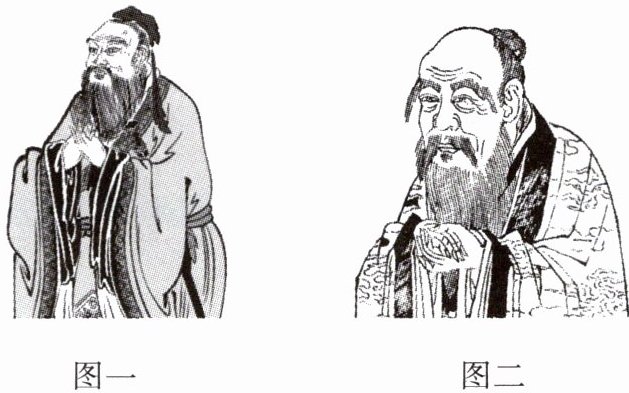 (1)图一:孔子,儒家学派。图二:老子,道家学派。