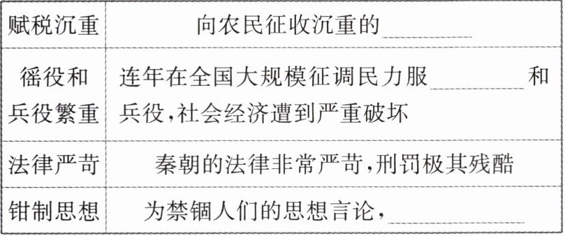 (2)秦二世的暴政:秦二世对民众的压迫更为残酷,他恣意挥霍,穷奢极欲。