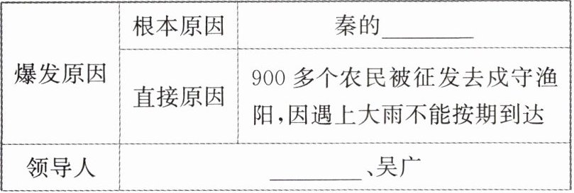 |爆发原因|直接原因|900 多个农民被征发去戍守渔阳,因遇上大雨不能按期到达|