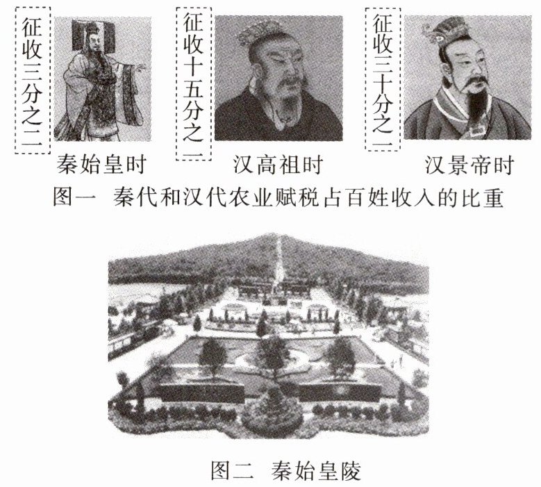 (1)根据图一和图二并结合所学知识,指出秦朝暴政的表现,并分析其影响。