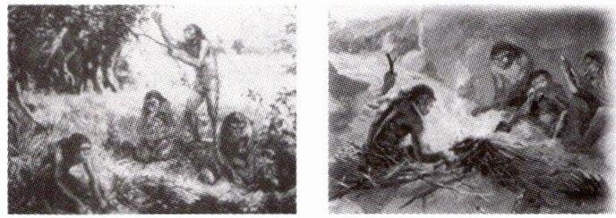 10. 下面两幅图是古人类活动场景想象图。仔细观察图片,写一篇小论文。(要求:观点正确,条理清晰,史论结合)