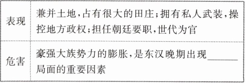 |危害|豪强大族势力的膨胀,是东汉晚期出现______局面的重要因素|