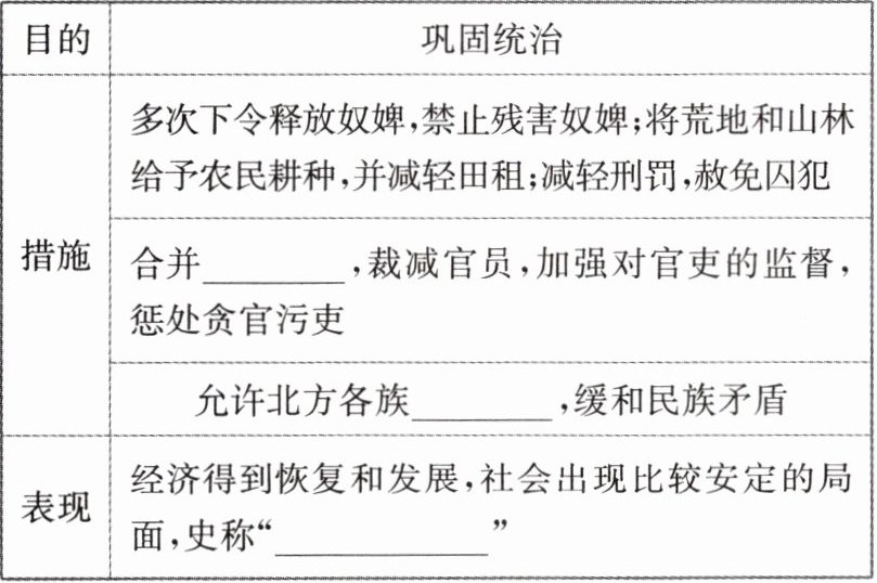 |表现|经济得到恢复和发展,社会出现比较安定的局面,史称“______”|