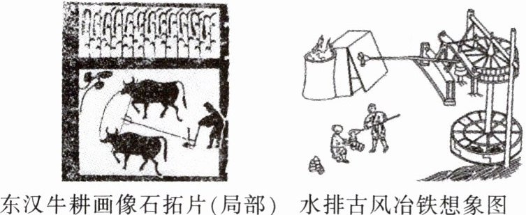 论述:东汉时期,耕作方式得以改进,人们改用二牛一人一犁的耕作方式,提高了农业生产效率,促进了农业的发展。生产工具的革新促进了手工业的发展,如东汉时期人们发明了水排,利用水利鼓风冶铁,提高了冶铁质量。