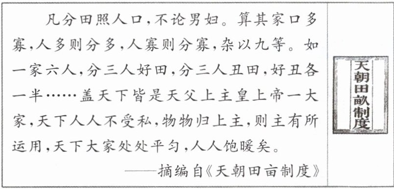 (2)通过材料可以看出太平天国试图建立一个怎样的理想社会?《天朝田亩制度》在当时起到了怎样的积极作用?