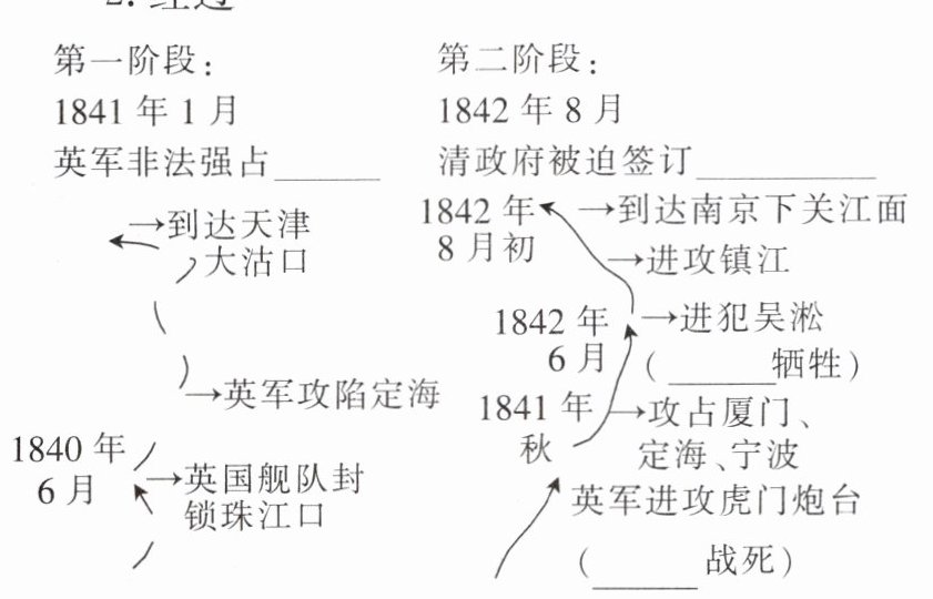 3. 结果:1842年8月初,英军到达南京下关江面。清政府向侵略者屈服。
