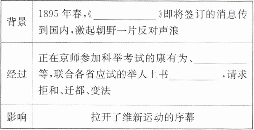 |背景|1895 年春,《______》即将签订的消息传到国内,激起朝野一片反对声浪|