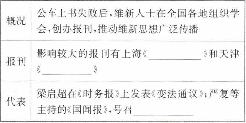 |代表|梁启超在《时务报》上发表《变法通议》;严复等主持的《国闻报》,号召______|