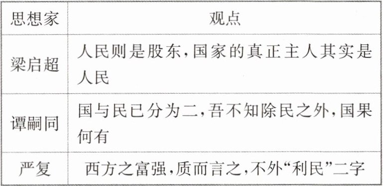 7. (新素养·历史解释)下表展示了维新思想家有关近代“国家观念”的观点。他们关注的共同主题是( )