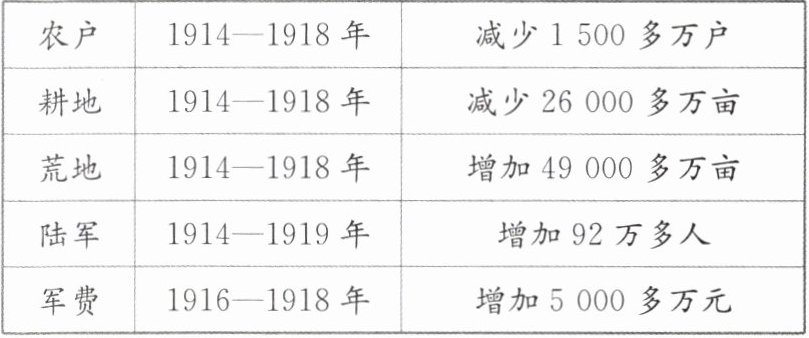 (4)社会生产遭到严重破坏(农户、耕地减少,荒地增加);人民生活困苦;军阀割据混战加剧,政局动荡,给人民带来深重灾难。