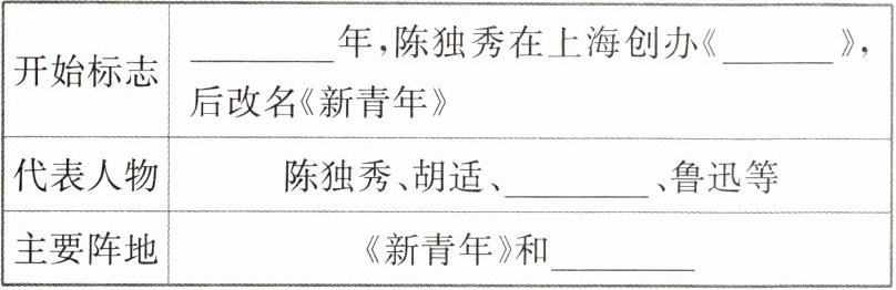 |开始标志|______年,陈独秀在上海创办《______》,后改名《新青年》|