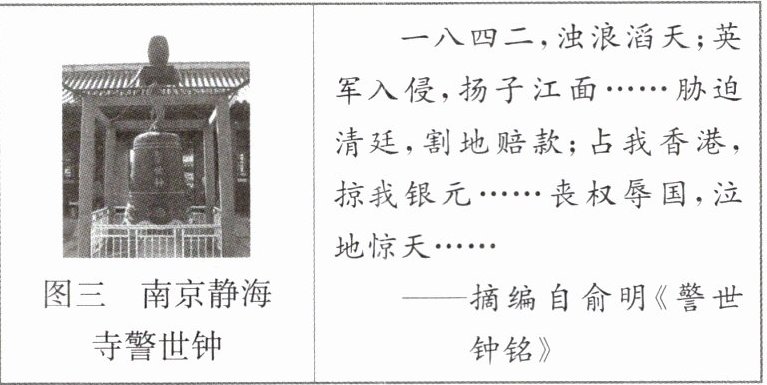 (2) 警世钟高1.842米,钟上刻有“前事不忘,后事之师”八个大字。请你根据警世钟铭文并结合所学知识,谈谈这些信息的重要意义。