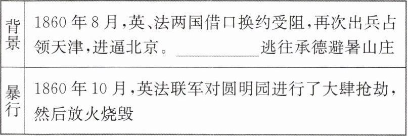 |背景|1860年8月,英、法两国借口换约受阻,再次出兵占领天津,进逼北京。____逃往承德避暑山庄|