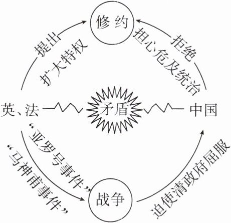 1. 原因:鸦片战争后,西方列强不满足既得利益,提出无理的修约主张,被清政府拒绝。