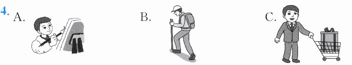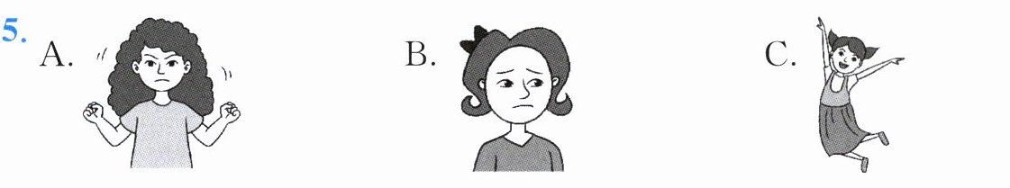 ( )5. A. I’m going to the cinema. B. He’s a cleaner. C. I feel angry.