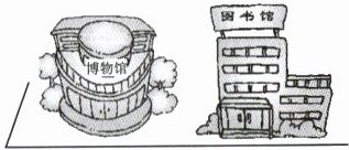 1. The museum is ______ ______ the library.
