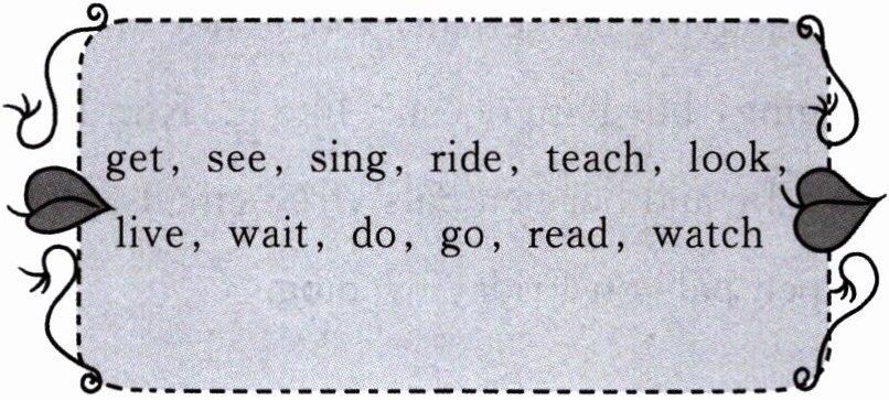 get, see, sing, ride, teach, look, live, wait, do, go, read, watch